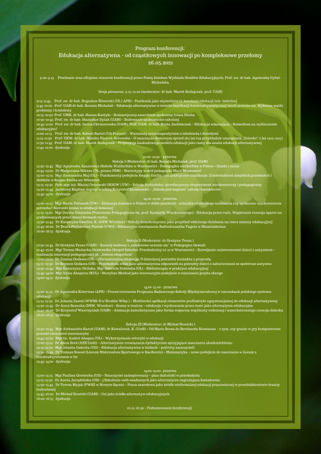 Bez kategorii Zapraszamy na konferencję! Już w najbliższą środę! Opublikował/a Iza Budajczak-Moder dnia 22 Maj 202126 Maj 2021 http://wse.amu.edu.pl/strona-glowna/content-wse/414782-konferencja-naukowa-edukacja-alternatywna-od-czastkowych-innowacji-po-kompleksowe-przelomy?fbclid=IwAR21gzSl82v7A7oNkYo_7NmcCw8UaWaK2xHHpX56QCzEZWn4dKBmLuxrp1I Udostępnij: Kliknij, aby udostępnić na X (Otwiera się w nowym oknie) X Kliknij, aby udostępnić na Facebooku (Otwiera się w nowym oknie) Facebook Lubię Wczytywanie… Powiązane