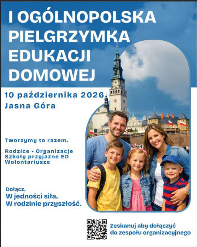 W moim sercu od dawna dojrzewa pragnienie, aby zawierzyć Panu Bogu całe dzieło edukacji domowej w naszym kraju — wszystkie rodziny, dzieci, szkoły, fundacje, organizacje i środowiska, które ją tworzą. Po wielu rozmowach i przemyśleniach postanowiłem podjąć inicjatywę organizacji I Ogólnopolskiej Pielgrzymki Edukacji Domowej na Jasną Górę, która odbędzie się 10 października 2026 roku.